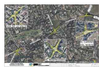 At an April 2024 County Board of Supervisors meeting, $3 million in TransNet funding was programmed for construction and this provides sufficient funding to fully construct the eastern roundabout at Paseo Delicias/Del Dios Rd and El Camino del Norte.
