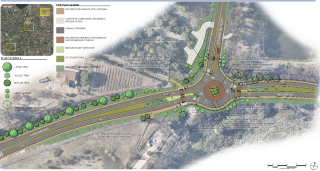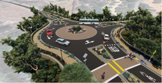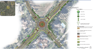 The planned work for this stage includes the construction of a roundabout intersection with an outside diameter of approximately 105 feet. Travel lanes will be 12 feet on the approaches and 16 feet within the roundabout circulating lanes.
