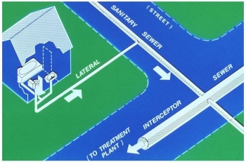 The sanitary sewer collection system is an underground network of pipes designed specifically for transporting sewage from houses, commercial buildings, and industrial facilities to sewage treatment and disposal facilities. Sewage collection systems consist of local collector pipes which empty into larger interceptor sewers that transport sewage for long distances and ultimately to local or regional treatment plants. Sewage collection systems are designed to transport sewage only.
