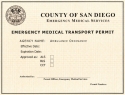 The County of San Diego Emergency Medical Services requires that all ambulance and non-emergency transportation provider hold a valid permit like the image above.