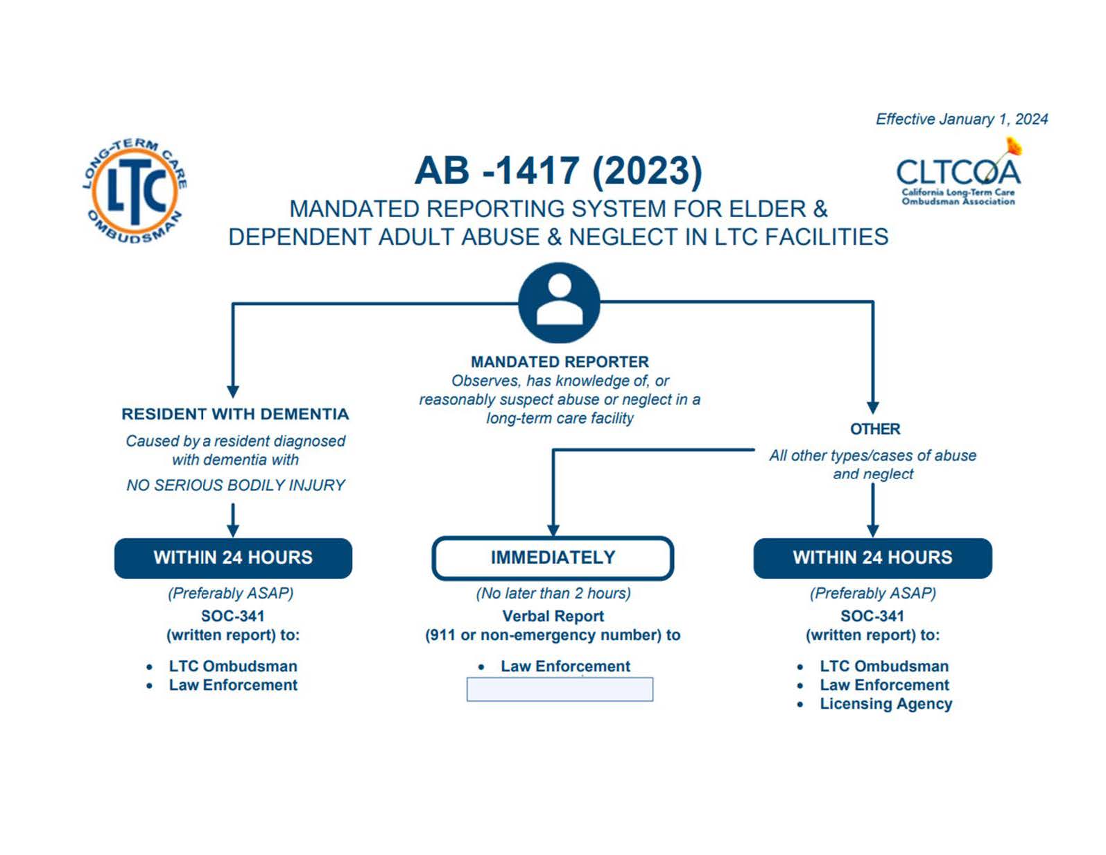 - Written reports can be completed via Form SOC 341.