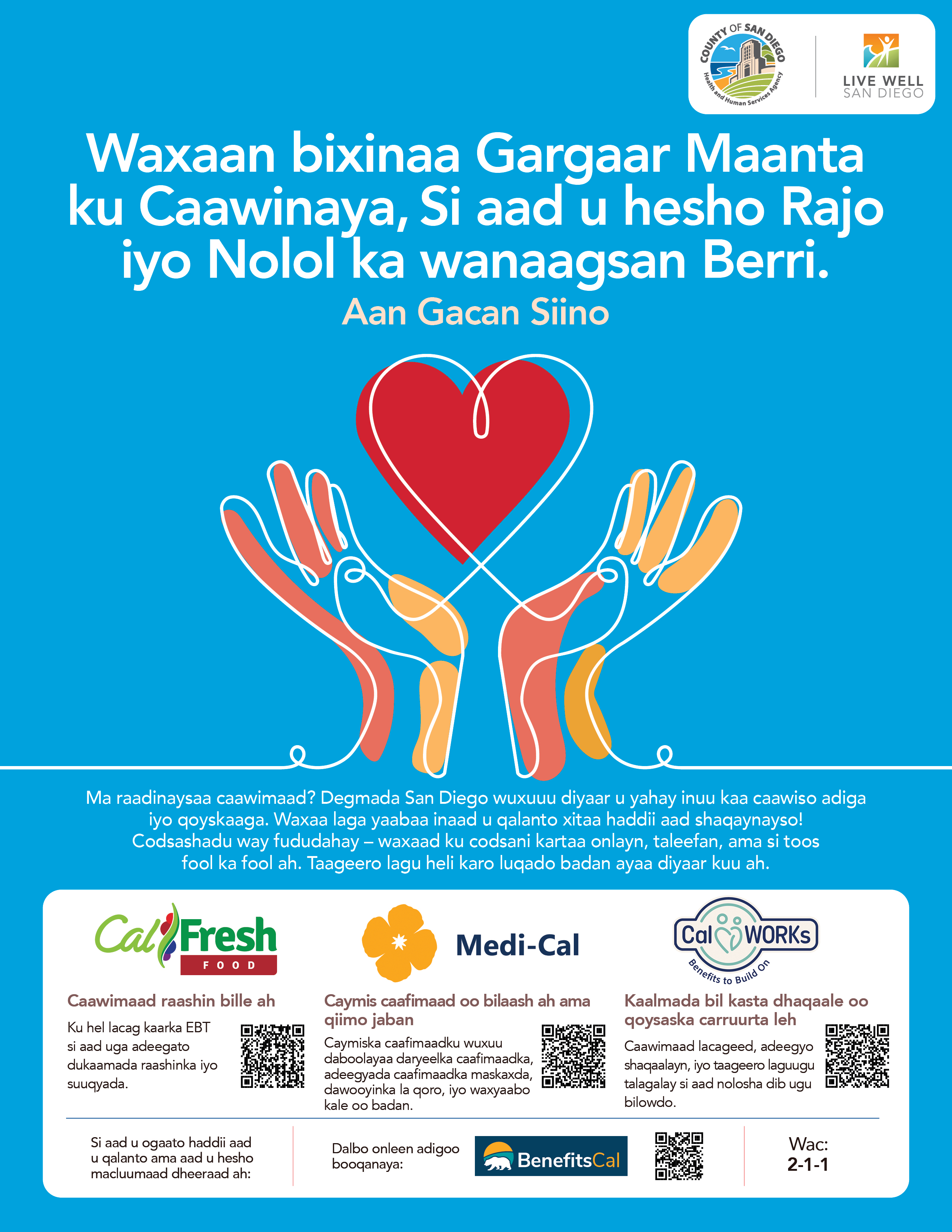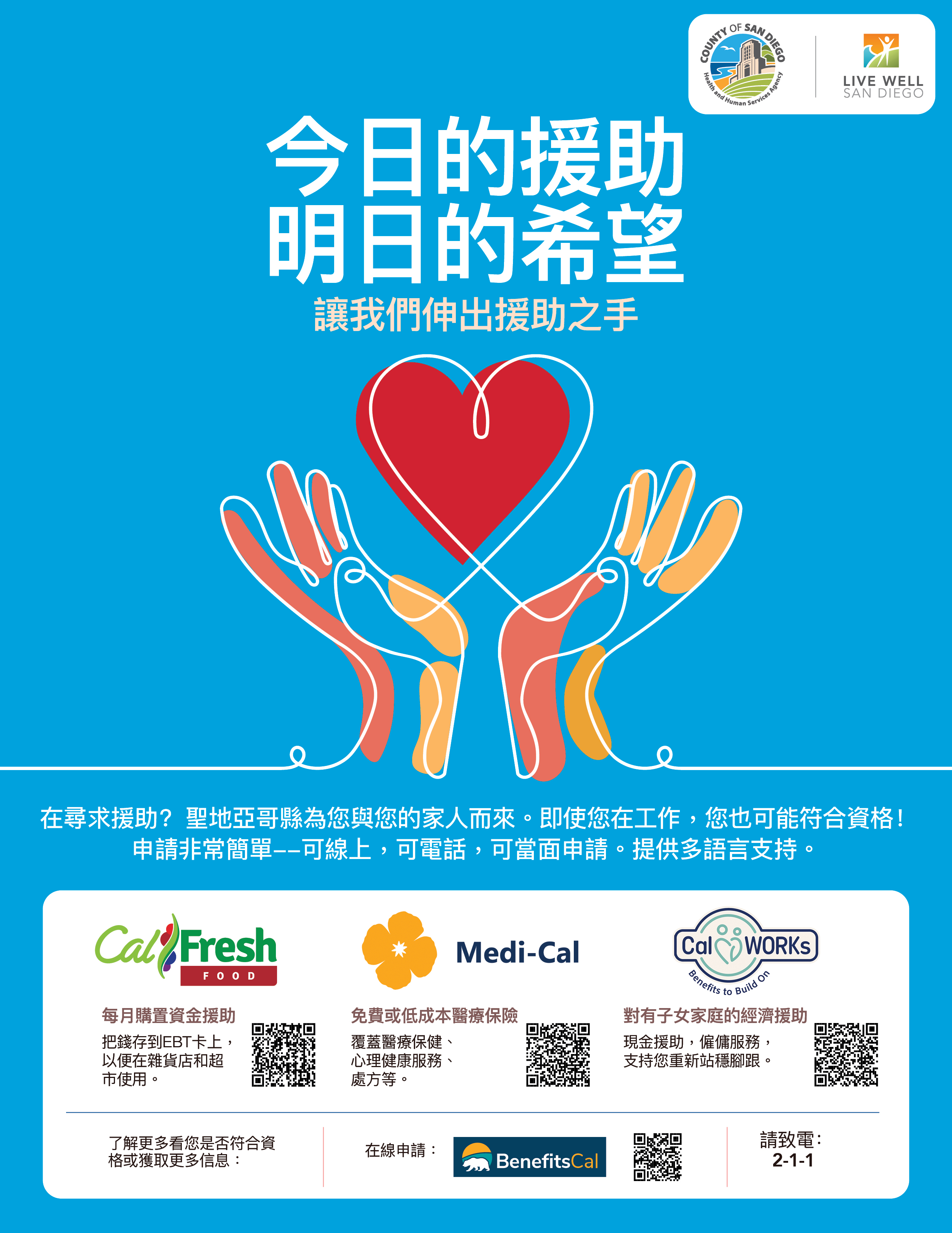 - Lifeline (Spanish, Arabic, Vietnamese, Tagalog)