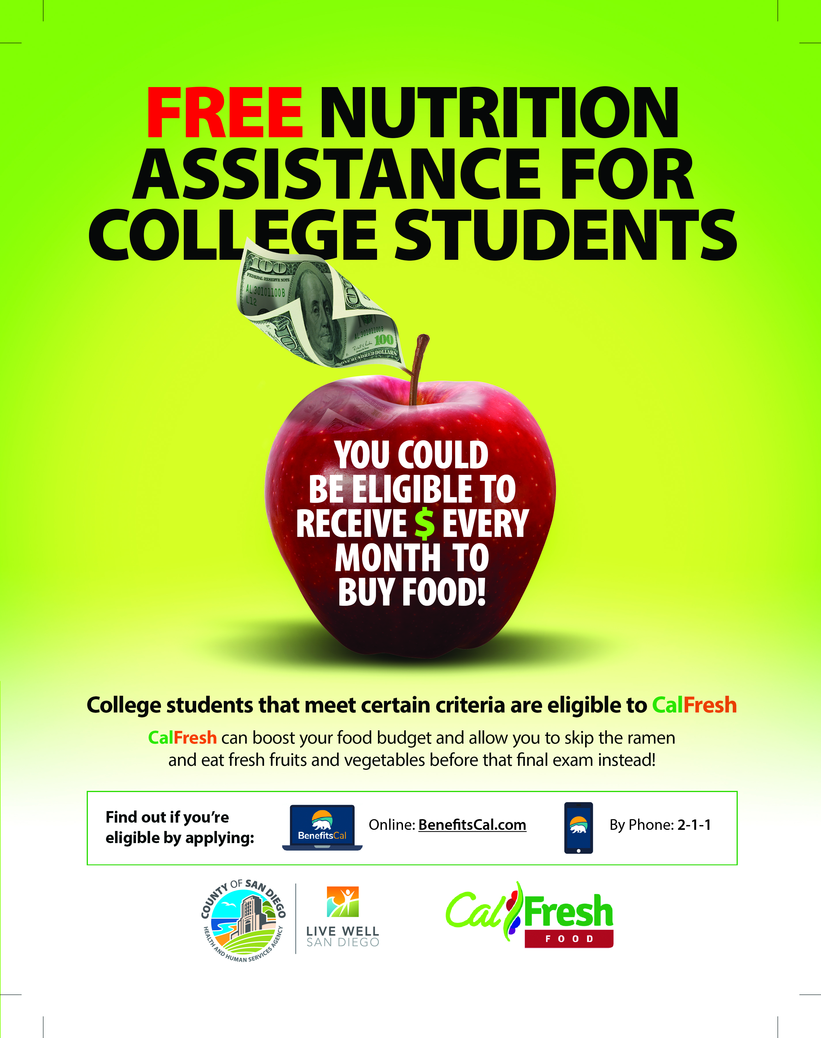 Click on the images below for flyers about County programs including Nutrition Assistance for Students and Seniors: