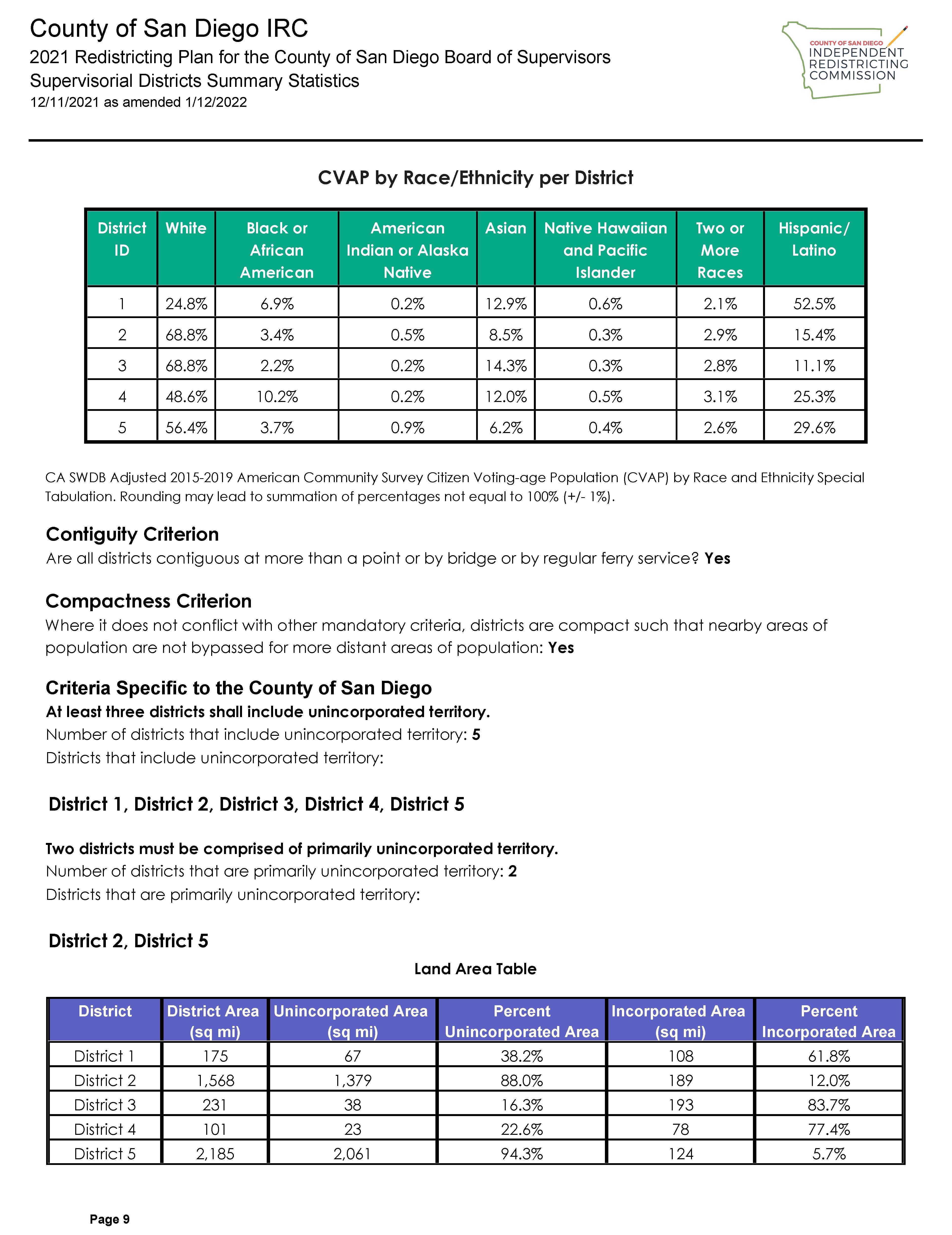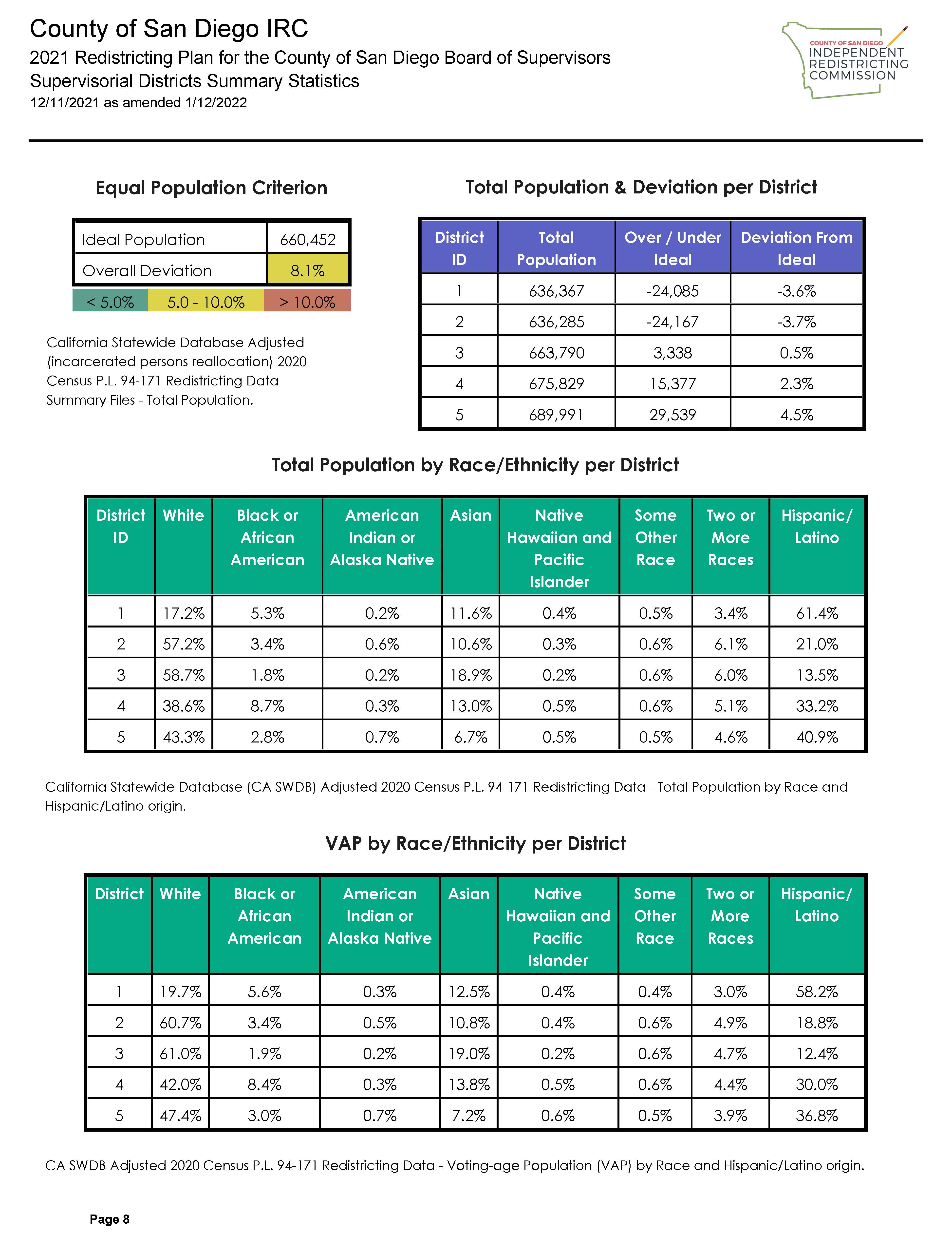 - County of San Diego 2021 Redistricting Final Report (Updated 1/12/22)