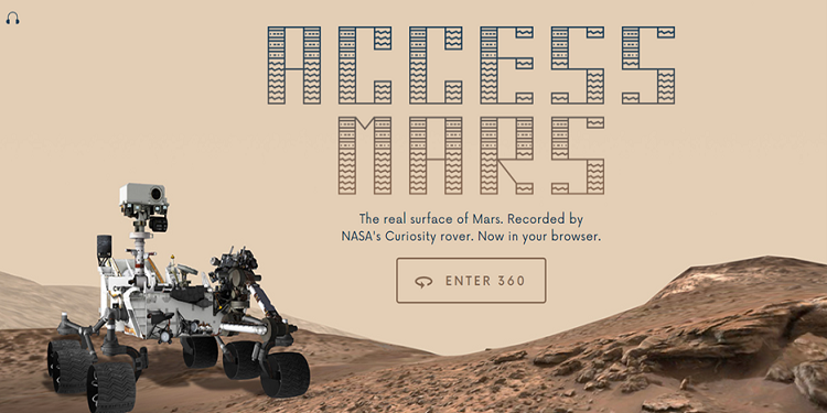 Visit several sites from the past five years of discoveries made by NASA's Curiosity rover! NASA's Jet Propulsion Laboratory in Pasadena, California, collaborated with Google to produce Access Mars, a free immersive experience. It's available for use on all desktop and mobile devices and virtual reality/augmented reality (VR/AR) headsets.
