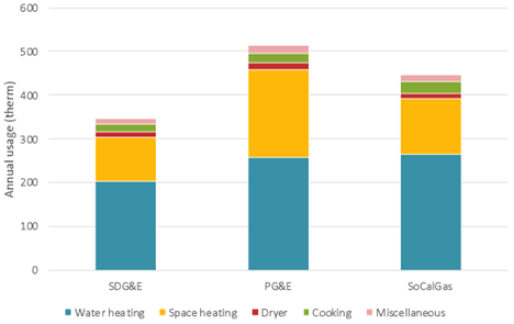 Replacing fossil fuel-based space heating and water heating systems with electric systems should be a primary policy focus for building emission reductions. Space heating and water heating together consume the vast majority of the natural gas supplied to residential buildings in the SDG&E service area (Figure 10). Commercial buildings are more varied in their energy consumption (Figure 11), but space and water heating still consume a large portion of total energy, and around two-thirds of commercial buildings space heaters use natural gas. Replacing space and water heating systems and other fossil fuel-based systems like ovens and dryers with electric versions will yield significant building decarbonization. Current heat pump technologies for space and water heating are readily available and outperform natural gas systems by providing more heating per unit of energy used, making these systems especially conducive to electrification. For building temperature regulation, electric heat pumps offer both heating and cooling from the same unit, making them ideal for homes that do not yet have air conditioning. Thus, regional policies should support adoption of efficient heat pump-based space and water heating systems to replace fossil fuel-based systems in both new and existing buildings.