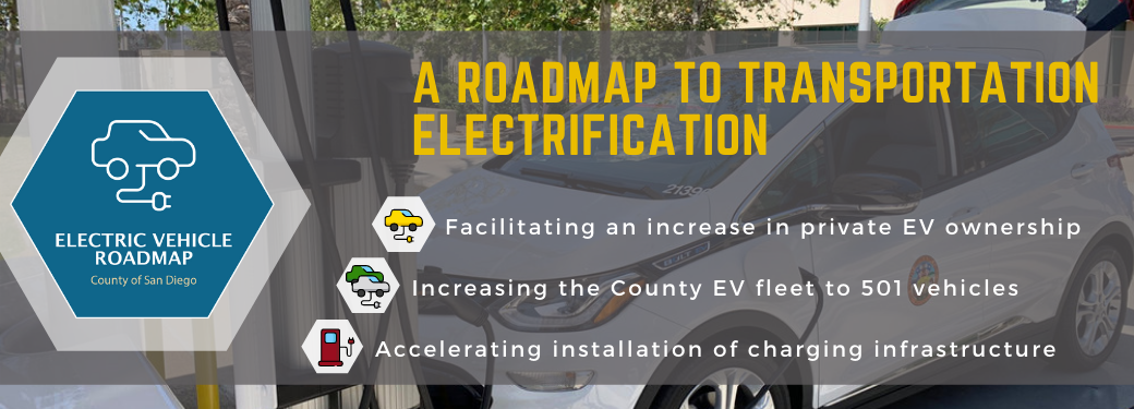 The County of San Diego’s commitment to sustainability is highlighted in the Board of Supervisor’s Strategic Initiatives, which identify that actively combating climate change through innovative or proven policies, green jobs, and sustainable facility construction or maintenance is a County priority. To further that commitment and improve air quality and health, and provide long-term economic benefits, on October 16, 2019, the Board of Supervisors adopted the Electric Vehicle Roadmap (EV Roadmap) to identify actions the County will take over the next decade to facilitate the adoption of clean mobility in the region.